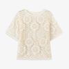 DIMANAF 2025 Neues T-Shirt Damen Strickspitze Blume O-Ausschnitt Aushöhlung Sommerstil Basic Oberteile T-Shirts Lockere Kleidung