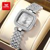 Voll Diamant Quarz Uhr für Damen Mode Quadratisches Zifferblatt mit römischen Ziffern Luxuriös Elegante Damen Kleider Armbanduhr