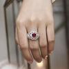 Neues Design Roter Korund Ausgehöhlter Diamantring Für Damen Kupfer Modeschmuck Muttertagsgeschenk