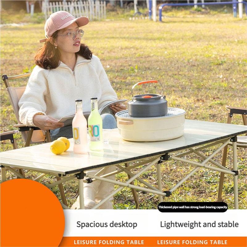 Rolling Fold Table Aluminum Camping Table Portable Picnic Table with Carry Bag Lightweight Outdoor Desk for Beach Hiking Travel