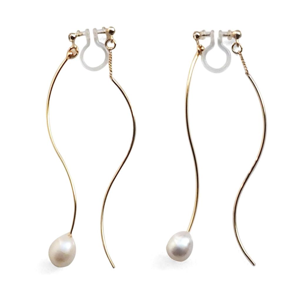 Earrings for Women Miyabi Grace Freshwater Pearl Earrings White Pearl Earrings Dangling Pierced Back Charm Painless Resin [Miyabi Grace] Non-Pierced