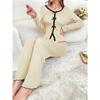 Herbst- und Winter-Pyjama-Set für Damen, Spitze, langärmelige Hose, zweiteiliges Pyjama-Set, Nachtwäsche, lässige Loungewear