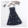 2023 Sommer Blumenbedrucktes Chiffon Mini Kleid Damen Lässig Mode Spaghetti Träger Ärmellos Elastisches Hochtaillenkleid