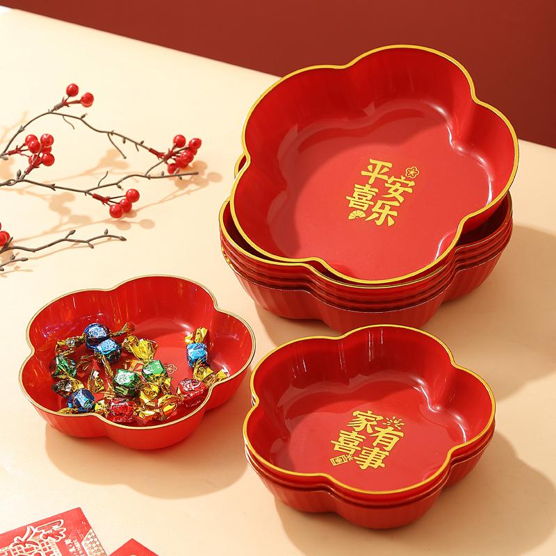 Neue Chinesische Art Rote Süßigkeitenschale Hochzeit Haushalt Wohnzimmer Kaffeetisch Glückliche Süßigkeitenschale Hochzeit Trockenfrüchte Nüsse Früchte Präsentationsplatte