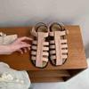 Damen Sommer Retro Casual Taschenkopf Schweinekäfigschuhe aus gewebtem Rindsleder