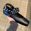 Retro-Nieten mit quadratischer Spitze, flache Mary Jane Schuhe für Damen zum Ausgehen im Frühling und Herbst
