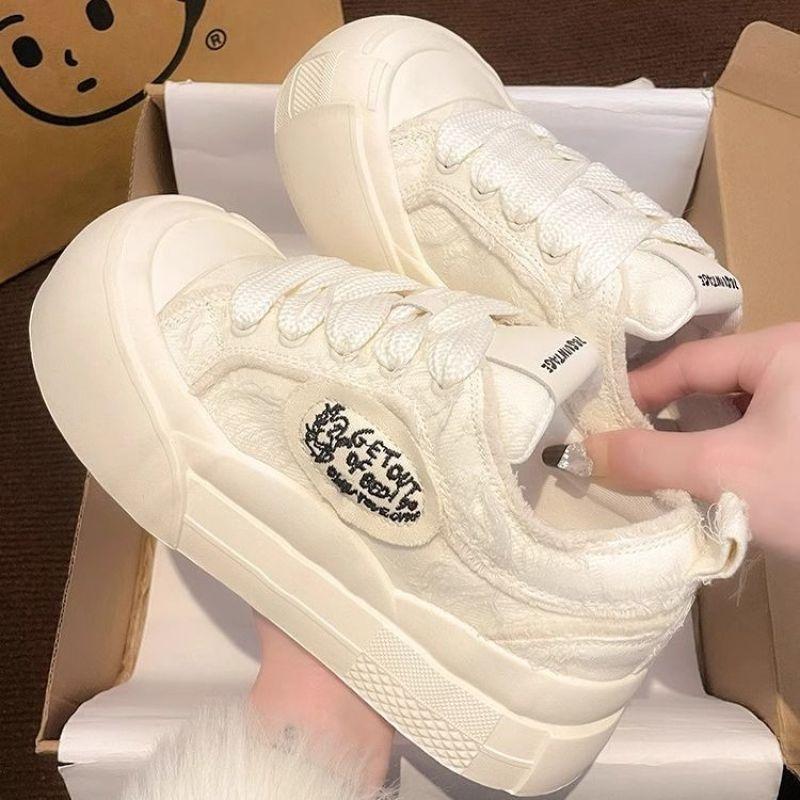 Cloud Huhu Damenschuhe 2025 Neu Dicksohlige Schuhe mit runder Spitze Design Canvas Freizeitschuhe