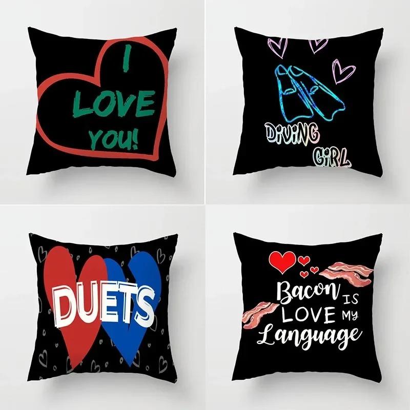 Herzform Geometrisches Muster Dekokissen Sofa Quadratische Kissenhülle