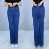 Frühlings- und Herbst-High-Waist-Jeans für Damen, elastische Taille, gerades Bein, lässige Übergröße, Mom-Jeans