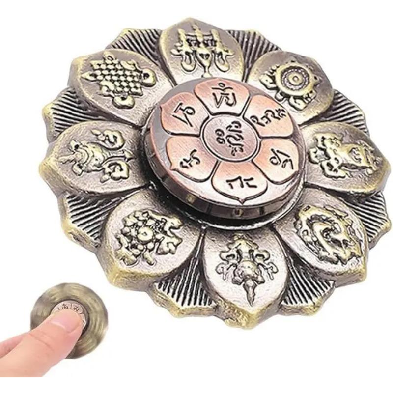 Buddhistischer Lotus Meditations Fidget Spinner, Stressabbauwerkzeug, Antik-Kupfer-Finish mit Glückssymbolen