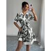 YYFS Damenmode Sommer Frühling Blumenmuster Druck Kurzarm POLO-Kragen Hohe Taille Lässige Kleider