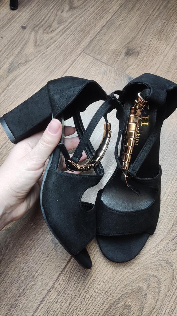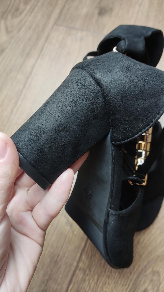 Sandalen mit stabilem Absatz Kunstwildleder, der Absatz ist ebenfalls mit Wildleder bezogen, sieht toll aus. Die Sandalen haben eine ungewöhnliche Riemenform, sehen am Fuß gut aus.. Bequemes Fußbett, stabiler dicker Absatz - in solchen kann man den ganzen Tag stehen, ohne die Venen wesentlich zu belasten. Fallen eine Nummer kleiner aus, für meine 37 habe ich Größe 38 bestellt. Die Qualität ist nicht schlecht, ohne überstehenden Kleber und Fäden, sorgfältige Verarbeitung.