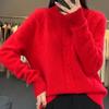 Neuer Herbst- und Winter-Rollkragen-Cardigan für Damen, verdickter Zopfmuster-Pullover, lockerer lässiger Unterzieh-Cardigan
