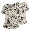 Damen Modisches bedrucktes kurzärmliges Oberteil mit V-Ausschnitt und kleiner Tasche für die Arbeit