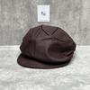 Herbst und Winter Litschi-Leder kleines Standard-Barett Damen vielseitig Retro Kürbishut modisch einfarbig Gesicht zeigend