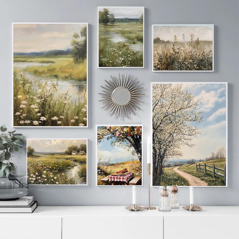 Vintage Ländliches Bauernhaus Wildnis Wildblumenfeld Landschaft Kunst Poster Leinwanddruck Wohnzimmer Schlafzimmer Heimdekoration Geschenke