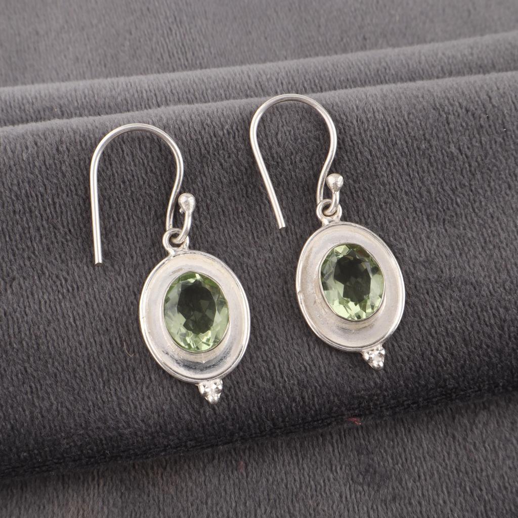 Grüner Amethyst Schmuck, 925 Sterlingsilber Ohrringe, Handgefertigter Damenschmuck Geschenk für Frauen, Zarte Edelstein-Ohrringe für Sie