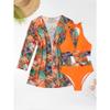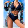 Neckholder Print Bikini Sets 3PCS Damen Badeanzug Mit Kimono Hohe Taille Bademode Weibliche Badegäste Baden Schwimmen Badeanzug Strandbekleidung