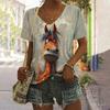 Damen V-Ausschnitt T-Shirt mit Cartoon Tierdruck Lässig Modisch Kurzarmshirt