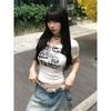 Mädchen Y2K T-Shirts Kurzarm Retro Damen T-Shirts Sexy Mode Weiße Oberteile