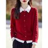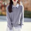 Neuer Herbststil Puppenkragen Schnalle Strickjacke für Damen mit Fake zweiteiligem Zopfmuster POLO-Kragen Kontrastierender Zopfpullover