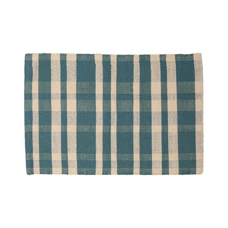 Dulton Cotton Handloom 500 x Washable Handwoven Checkered Machine Mat, Green, 750mm, 100% Cotton, Mat, Rug, Pattern, Washable, RN-0497-75GN