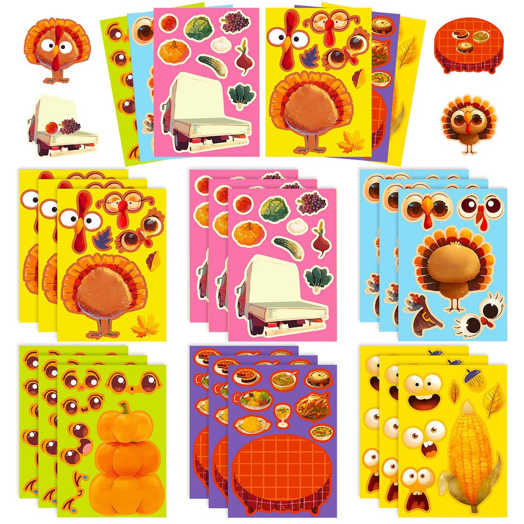 6 Photos/package Thanksgiving Children's Turkey Handbook DIY Puzzle Stickers Autumn Harvest Festival Celebration Face Change