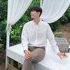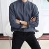 Hochwertiges grau-blaues Stehkragenhemd für Herren Sehr elegant fließend Koreanischer Stil Frühling Herbst Freizeithemd mit reifem Stil.