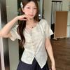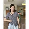 New V-neck Trendy Short-sleeve T-shirt Women Summer Chic Slim Slit Irregular Cropped Top