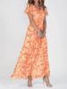 Florales Chiffon Strandkleid Langer Rock Modischer V-Ausschnitt Rüschen Taillenbetonung Kurze Ärmel