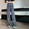 Damen Frühling und Sommer Dünne Eis-Seide Batik Schmale Weitbeinige Hosen Hochtailliert Gerade Bein Slim-Fit Fließend Lässig Bodenlang