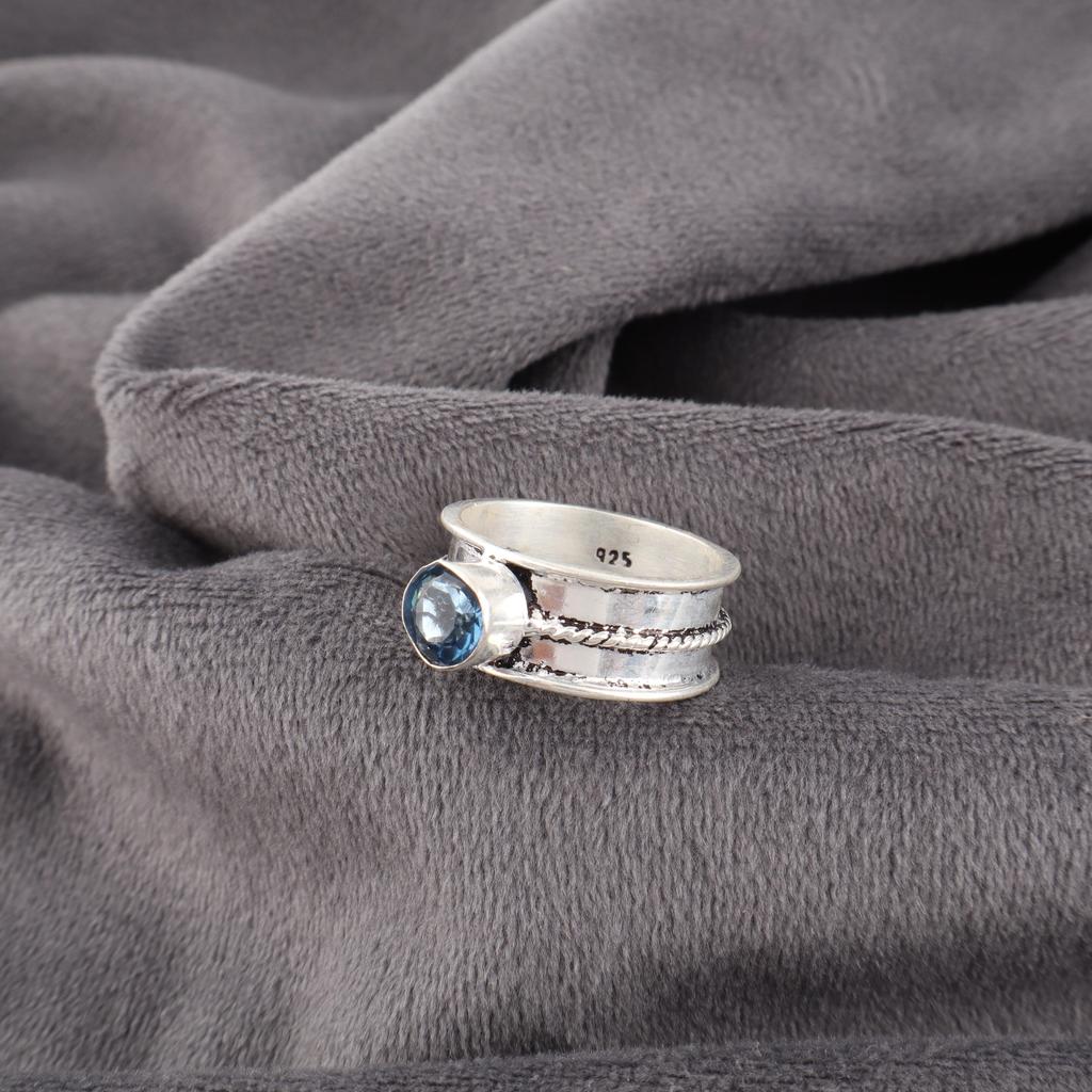 London Blautopas Schmuck, 925 massiver Sterlingsilberring, handgefertigter Edelstein-Schmuckring zum Gedenktag