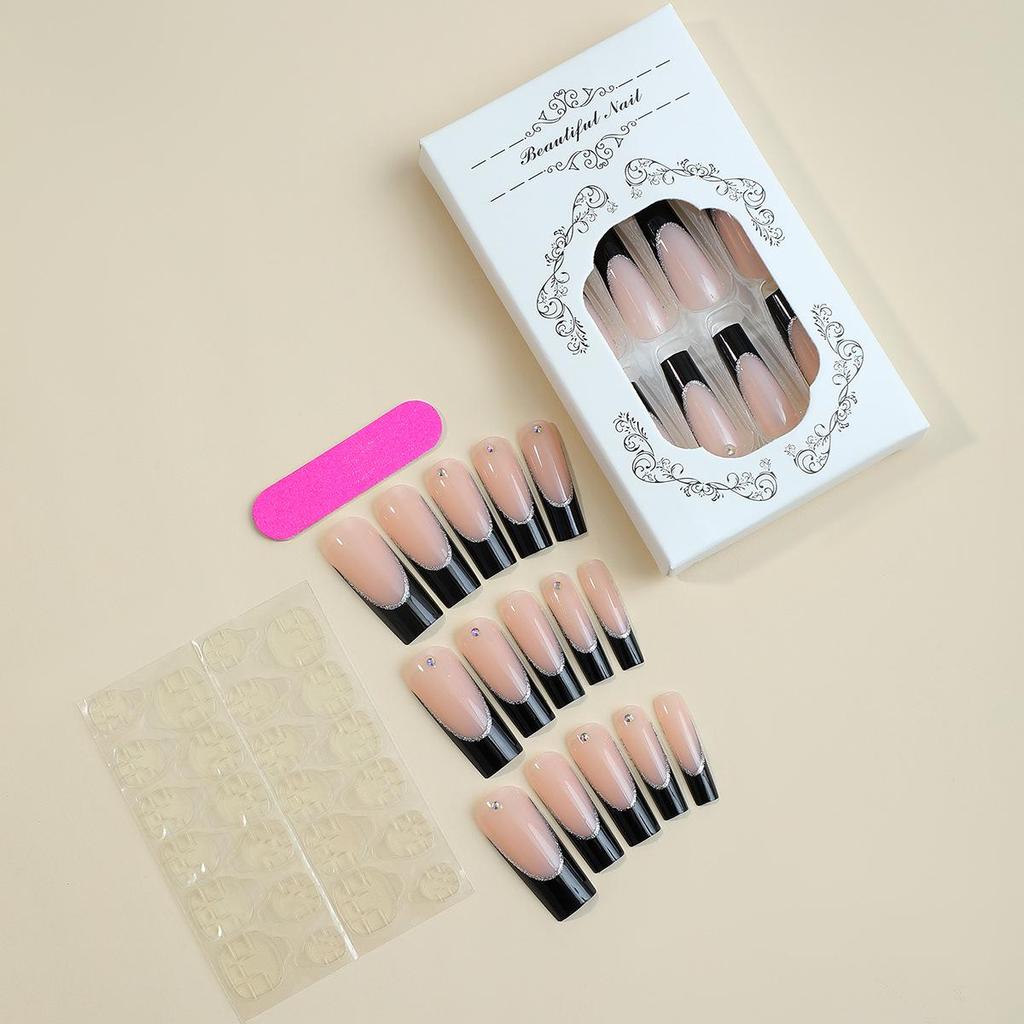 French-Inspired Wearable False Nails with Rhinestone Glitter, Removable Fastening