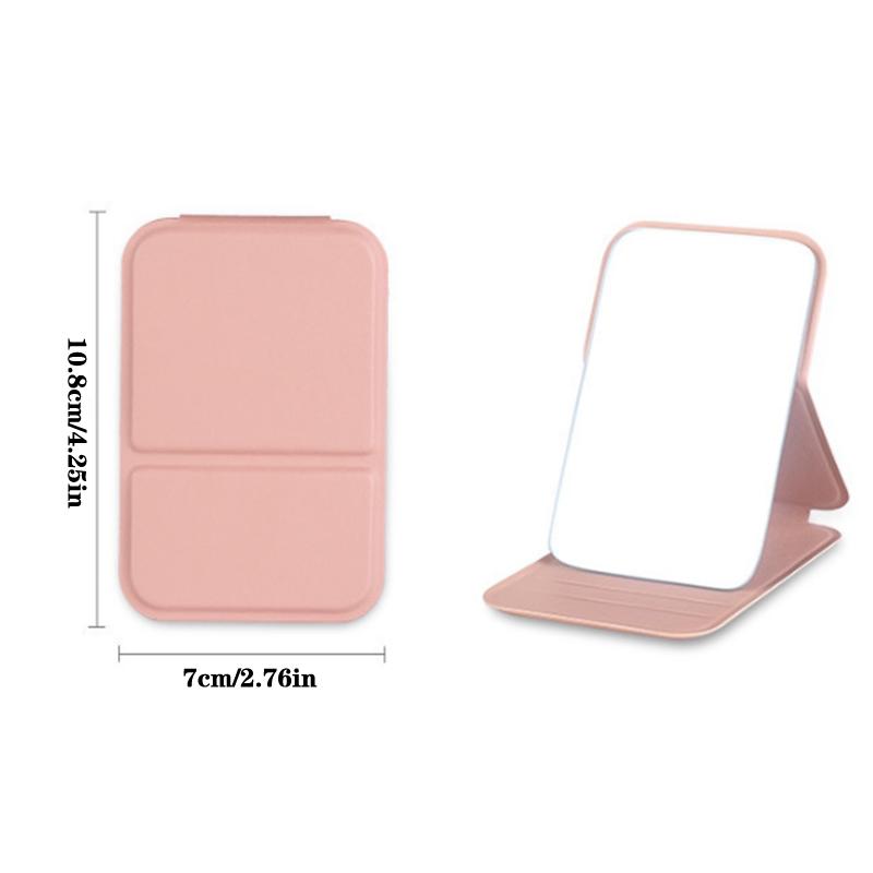Desktop-Make-up-Spiegel, einfarbig, Pu-Leder, einfacher tragbarer Hand-Make-up-Spiegel, faltbarer kompakter süßer Taschenspiegel für Studenten