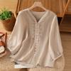 Cotton and Linen 2025 Five-point Shirt Solid Color Summer Loose New Leisure Retro Embroidered Top