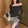 Drawstring Pleated One-shoulder T-shirt for Women's Spring Design Irregular Apricot Sunscreen Shirt Slim Long-sleeved Top