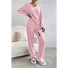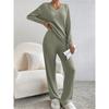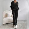 Pyjama Zweiteiler Damen Neu Lässig Gerade Bein Hose Temperament Locker V-Ausschnitt Lochstrick Anzug