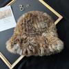 Herbst- und Winterwolken Plüschhut Damen warmer Kaninchenfellhut großer Kopfumfang zeigt kleines Gesicht flauschiger Topfhut