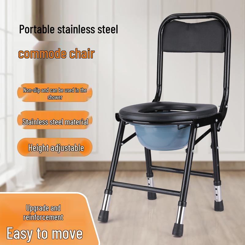 Mobile Folding Toilet Chair for Elderly, Disabled, or Pregnant Users with Reinforced Lifting Feature