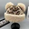 Pelzige Bärenohren Leopardenmuster Plüsch Mongolische Mütze Damen Herbst und Winter Imitatfell Verdickte Thermische Beckenmütze Fischerhut