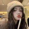 Autumn and winter plush hat, ear protection, headgear, striped color matching knitted hat, warm and face-showing, versatile strap, pullover hat
