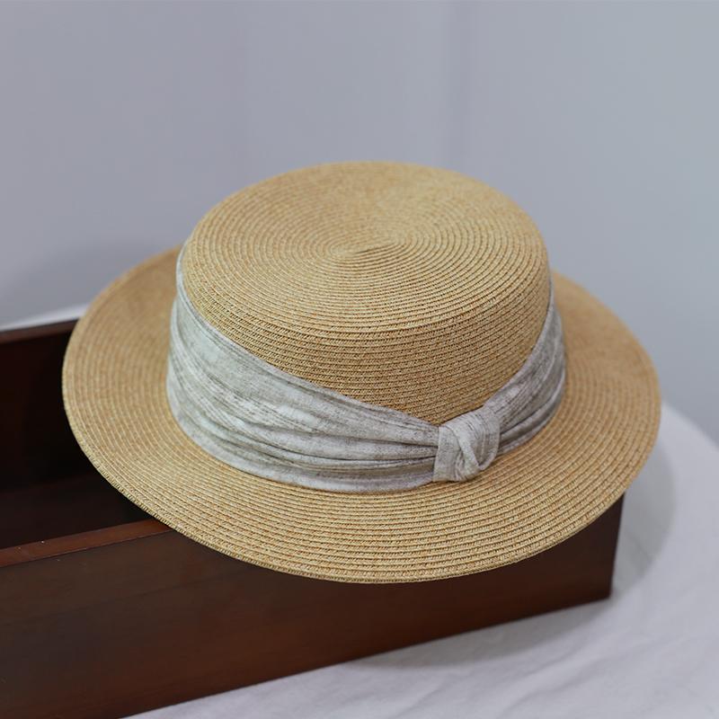 Ink wind webbing, flat-top straw hat for women, summer sunshade travel, versatile top hat, sunscreen hat, seaside woman