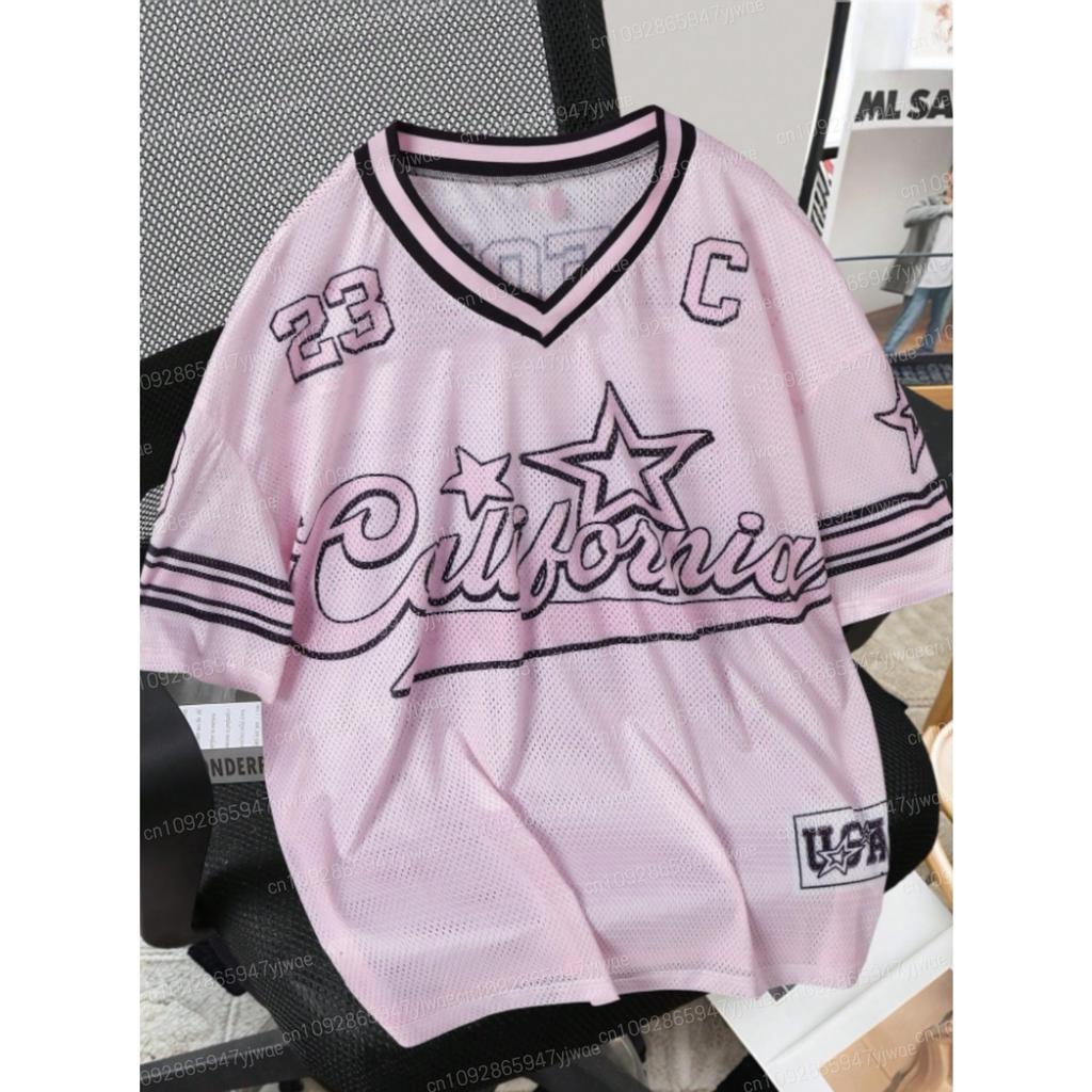 2025 23 Damenhemd Gestreiftes V-Ausschnitt T-Shirt Sommer Harajuku Trendy Kurzarm Street Top