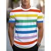 Herren Casual Gestreiftes T-Shirt mit Digitaldruck 3D Rundhals Kurzarm Perfekte Sommer- & Freizeitkleidung