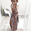 Bohemian Sexy Sommer Chiffon Print V-Ausschnitt Kurzarm Hohe Taille Schnürung Kleider Größen S bis XXL