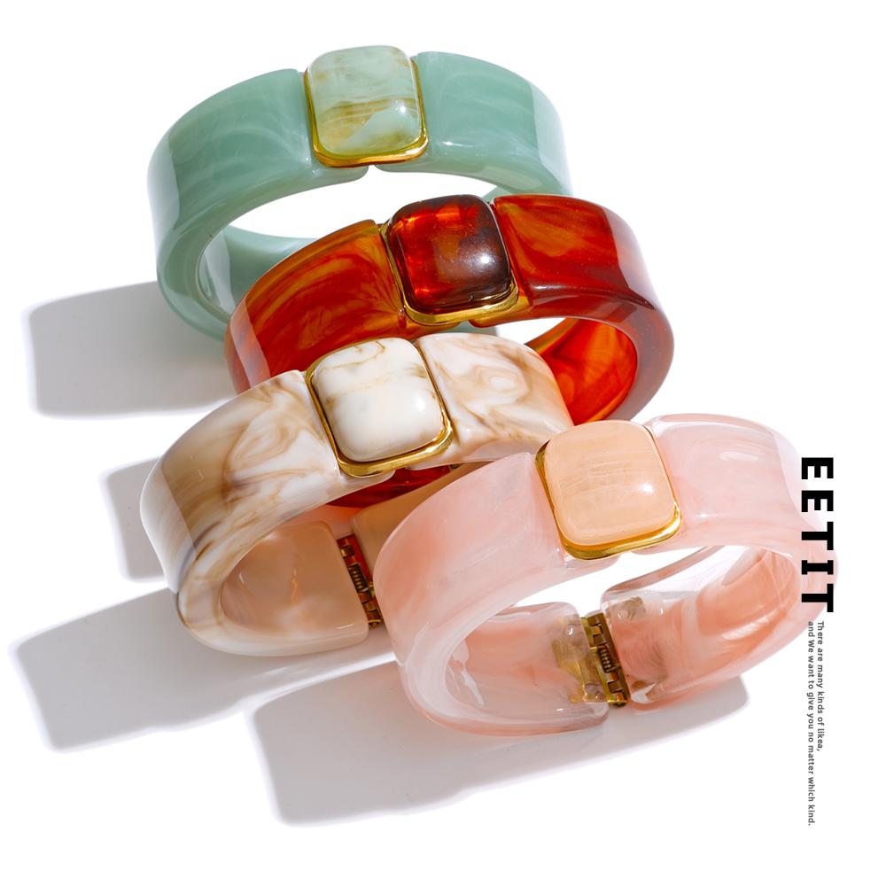 Eetit 63mm Grün Rosa Beige Bernstein Acryl Breitarmreif Armspange Wasserdicht Mode Sommer Attraktiver Schmuck Großhandel