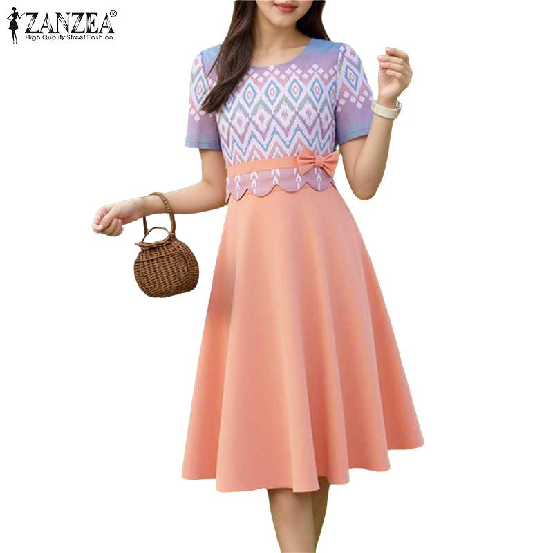 ZANZEA Damen Freizeitkleid mit Druck-Patchwork, Sommer, Kurzarm