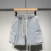 Sommer Denim Midilänge Lässige Lockere Gerade Shorts - Live-Übertragungsstil