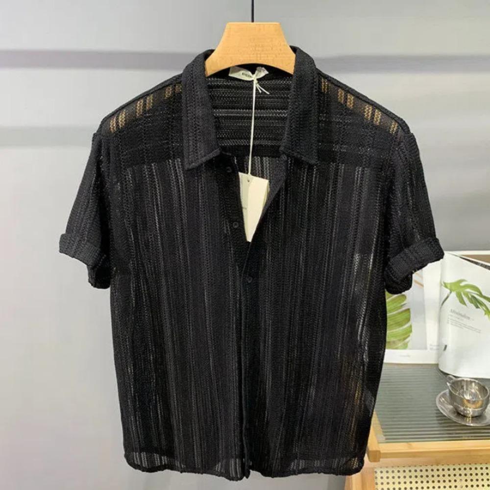 2025 Neues Einfarbiges Schlichtes Lochmuster Kurzarmhemd Sommer Dünn Mode Hübsch Leichter Luxus Hängendes Herrenoberteil