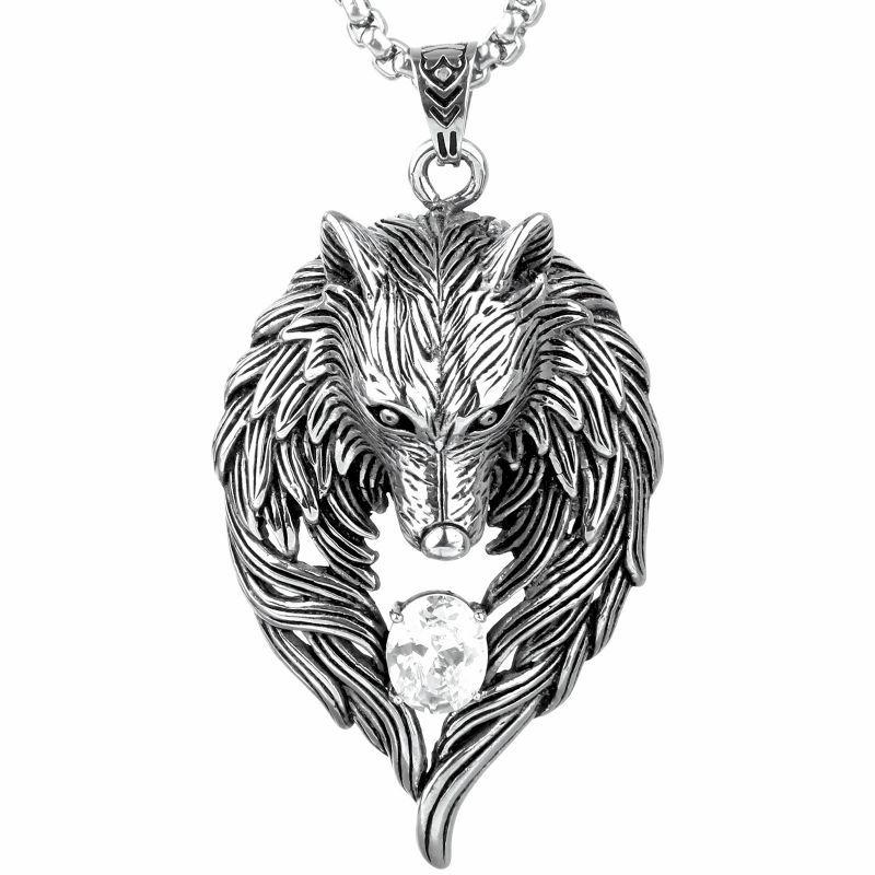 Felsen Wolf Totem Diamant Set Großer Wolfskopf Herren Mode Halskette Anhänger